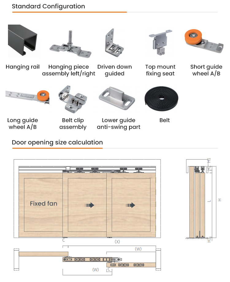 ③ Bevel round shaped wheels with high-precision bearings for sliding doors